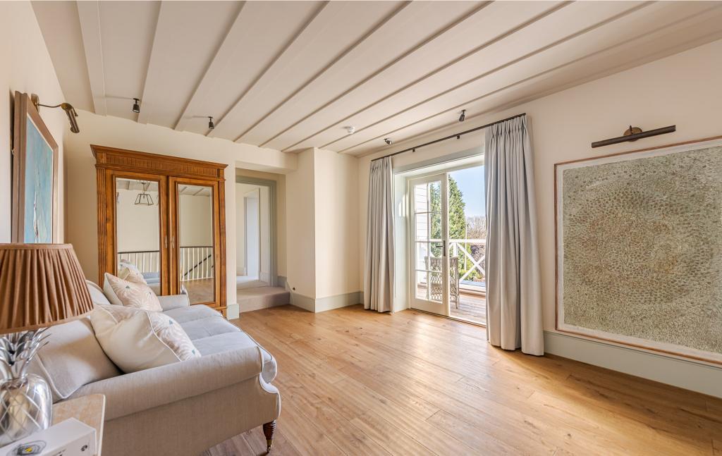 The heart of the house flows seamlessly between kitchen, dining and sitting areas, opening directly onto landscaped gardens, an outdoor swimming pool and a fully equipped pool house, echoing the indoor-outdoor lifestyle synonymous with Hamptons living. Additional features including a bar and games room, snug and study provide varied looks and flexible shoot options, while the igloo sauna and outdoor bath add a contemporary twist to the classic coastal aesthetic.