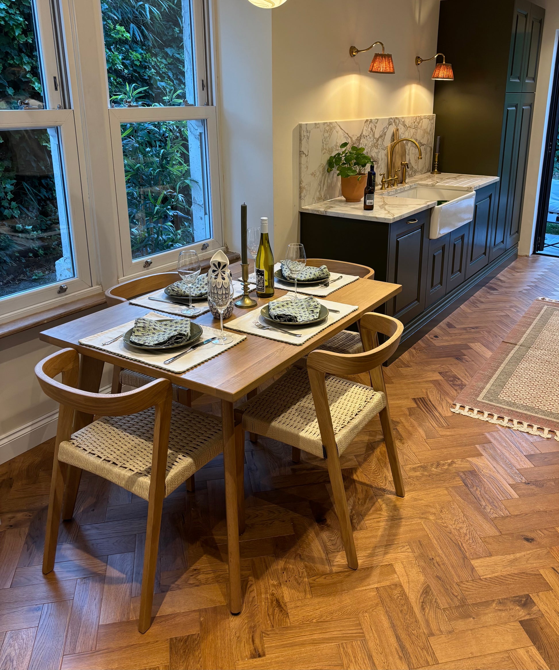 Fridge, oven, microwave-combi oven, induction hob, wine fridge, dishwasher